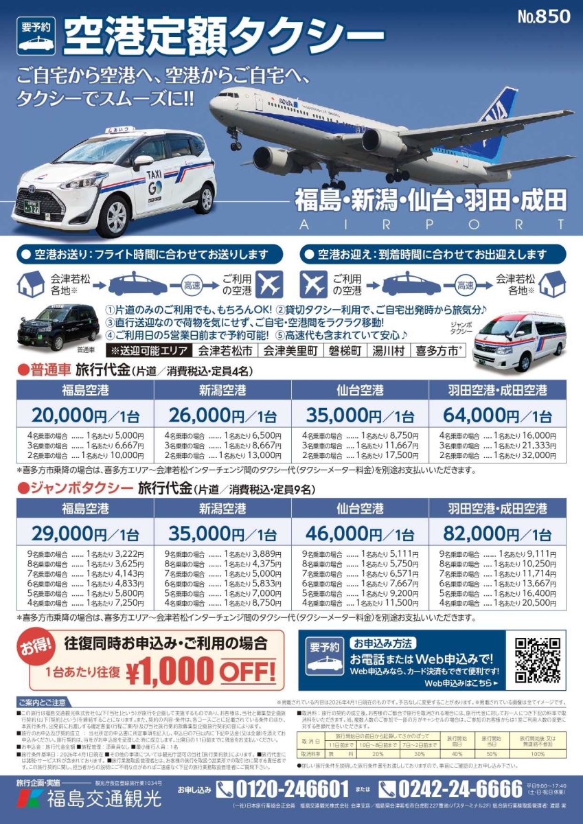 ご希望の出発地(会津若松各地※①のご自宅やホテルなど)